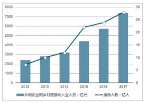 2012-2017年中國休閑農(nóng)業(yè)與鄉(xiāng)村旅游接待人數(shù)及增長走勢