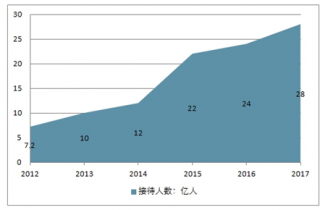 2012-2017年中國休閑農(nóng)業(yè)與鄉(xiāng)村旅游接待人數(shù)及增長走勢
