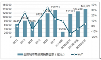2018年全國(guó)城市商品房銷售金額及增速展望