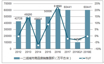 2018年中國(guó)一二線城市商品房銷售面積及增速展望