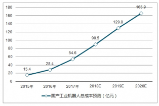 2015-2020年中國(guó)國(guó)產(chǎn)工業(yè)機(jī)器人總成本測(cè)算