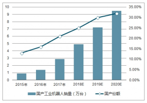2015-2020年中國(guó)國(guó)產(chǎn)工業(yè)機(jī)器人銷(xiāo)量及國(guó)產(chǎn)份額測(cè)算