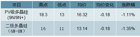 太陽(yáng)能光伏硅片每周現(xiàn)貨價(jià)格(單位:美元)