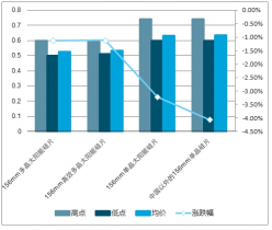 硅片價(jià)格持續(xù)下跌。本周156mm多晶太陽(yáng)能硅片、156mm高效多晶太陽(yáng)能硅片均價(jià)分別報(bào)于0.526和0.532美元,分別下跌1.13%和1.12%。156mm單晶太陽(yáng)能硅片均價(jià)報(bào)于0.632美元,下跌3.22%。