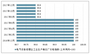 2017年12月全國(guó)電氣設(shè)備修理業(yè)工業(yè)生產(chǎn)者出廠價(jià)格指數(shù)