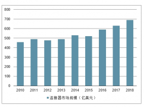 2010~2018 年中國連接器市場規(guī)模(億美元)