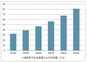 2018-2023年中國新能源汽車連接器行業(yè)市場規(guī)模預(yù)測(單位:億元)