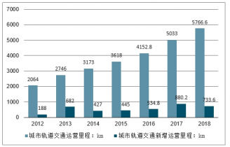 2012-2018年中國城市軌道交通運營里程及新增運營里程走勢