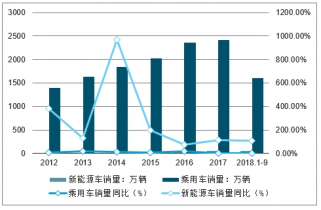 2018年中國(guó)乘用車銷量、新能源汽車銷量及增長(zhǎng)走勢(shì)