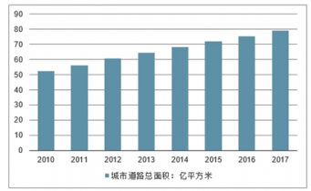 由于城市的發(fā)展,人口的集中,各種交通工具大量增加,城市交通日益擁擠,公共汽車行駛速度緩慢,道路堵塞,交通事故頻繁,人民生活環(huán)境遭到廢氣、噪聲的嚴(yán)重污染。解決日益嚴(yán)重的城市交通問題已成為當(dāng)前重要課題。2017年我國城市道路總面積達(dá)到78.89億平方米,總建設(shè)長度為39.78萬公里。同時(shí),隨著我國城市道路的發(fā)展,道路照明燈數(shù)量增長速度也非常快,2017年我國城市道路照明燈總數(shù)量達(dá)到2593.6萬盞。