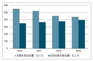 2015-2018年中國巡游出租車客運量及出租車客運總量情況