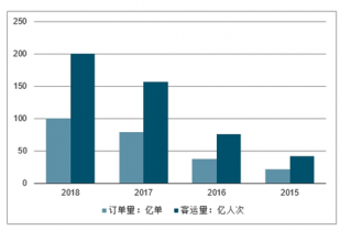 2015-2018年中國網(wǎng)約車出租車客運量及訂單量情況