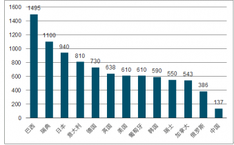 世界主要國家每百萬人口擁有牙科醫(yī)生數(shù)量