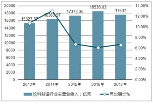 2013-2017年中國飲料制造行業(yè)主營業(yè)收入統(tǒng)計及增長情況