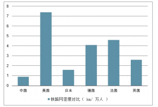 相比其他國家,我國的鐵路網(wǎng)密度仍然有較大的提升空間。根據(jù)中國鐵路總局以 及世界銀行的相關(guān)數(shù)據(jù),我國不管從每萬平方公里的鐵路里程數(shù)還是每萬人的鐵路里 程數(shù)來說都處于較低水平,還有很大的提升空間。