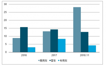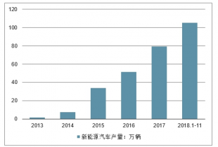 2018 年 1-11 月,全國新能源汽車 產(chǎn)量為 105.35 萬輛,同比增長 63.6%,累計(jì)銷量達(dá) 102.98 萬輛,同比增長 68%。新能源汽車的銷量快速增長與傳統(tǒng)汽車銷量增速兩位數(shù)的下滑形成了鮮明的對比。