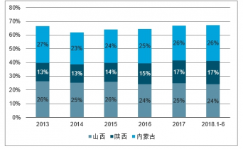 2013-2018年1-6月原煤行業(yè)產(chǎn)地分布情況
