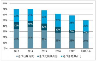 2013-2018年1-6月進(jìn)口煤煤種分布情況