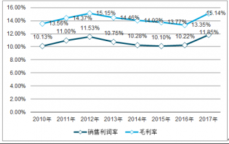 2010-2017年水泥制品制造行業(yè)毛利率及銷售利潤(rùn)率(%)