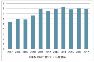 2007-2017年中國平板玻璃產(chǎn)量變化(單位:億重量箱,%)