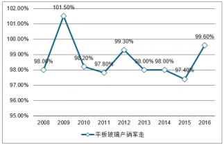 2008-2016年中國平板玻璃產(chǎn)銷率走勢(shì)