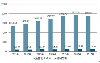 2011年-2017年全國(guó)塑料包裝箱及容器制造行業(yè)主營(yíng)業(yè)務(wù)收入與利潤(rùn)總額
