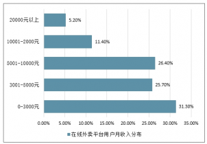 2019年Q3中國在線外賣平臺用戶月收入分布情況