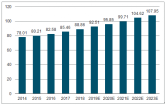 2014-2023全球紅外市場規(guī)模及預測(億美元)