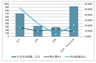 2019年全球各區(qū)域游戲市場規(guī)模、市場規(guī)模占比及同比增長走勢