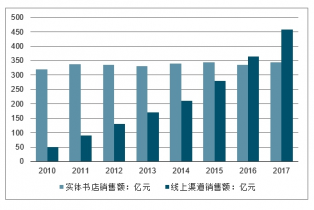 2010-2017年實(shí)體書(shū)及線上渠道銷售額情況