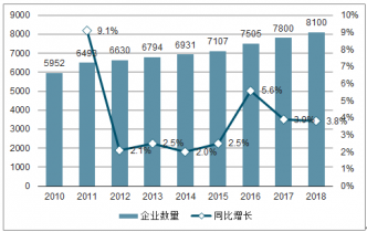 2010-2018年中國中國工程造價(jià)咨詢行業(yè)企業(yè)數(shù)量及增速