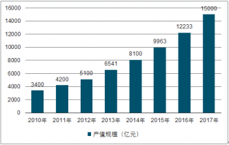 2010-2017年中國(guó)智能制造行業(yè)產(chǎn)值規(guī)模