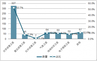 截至2019年4月,全球遙感衛(wèi)星數(shù)量達(dá)到684顆,較2017年末增加了64顆。各類遙感衛(wèi)星來看,截至2017年8月31日,光學(xué)成像衛(wèi)星為327顆,占遙感衛(wèi)星總量的52.7%;處于太陽同步軌道上的活躍遙感衛(wèi)星數(shù)量為415顆,占比72.2%。