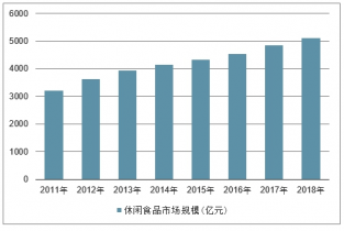 2011-2018年中國休閑食品市場規(guī)模走勢(億元)