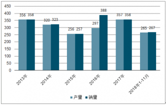 2013-2018年中國車用柴油機(jī)產(chǎn)銷量
