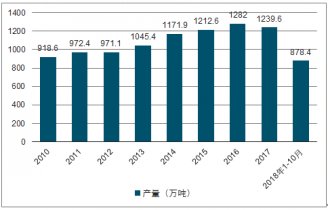 2010-2018年中國(guó)罐頭產(chǎn)量