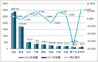 針對(duì)排名前十的汽車銷售量國家分析,我國不斷增強(qiáng)的內(nèi)需購買能力和旺盛的市場需求使得近兩年在全球汽車銷售規(guī)模領(lǐng)域占比穩(wěn)居首位,美國緊隨其后,日本排名第三;2017年我國全球汽車銷售占比為29.77%,美國為17.76%,由于當(dāng)年其他新興國家汽車銷售規(guī)模大幅增加,致使兩國汽車銷售占比小幅下降。