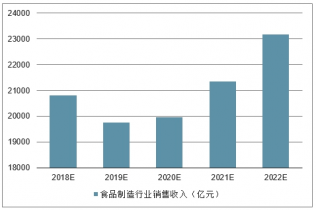 2019年我國(guó)食品制造行業(yè)銷售收入將達(dá)到20,806億元,未來(lái)五年(2018-2022)年均復(fù)合增長(zhǎng)率約為2.73%,2022年將達(dá)到23,177億元。