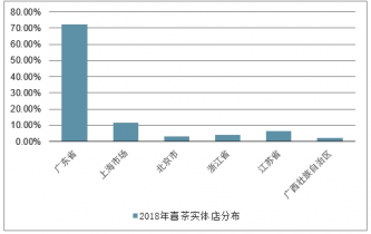 2018年喜茶實體店分布區(qū)域情況