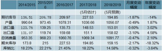 圖表 2014-2019年度世界玉米供給與消費(fèi)情況