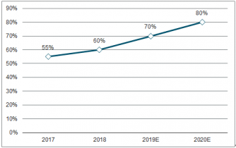 2019年車載信息娛樂系統(tǒng)滲透率約為60%