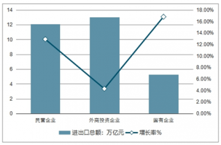 2018年中國(guó)三大類(lèi)型 企業(yè)進(jìn)出口額及增長(zhǎng)率走勢(shì)