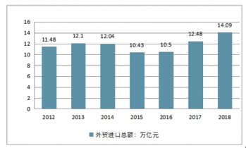 2012-2018年中國(guó)外貿(mào)進(jìn)口總額走勢(shì)