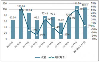 2009-2018年中國(guó)重卡行業(yè)銷(xiāo)量