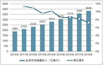 2010-2018年全球營養(yǎng)保健品市場規(guī)模及增長