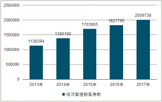 2013-2017年中國經(jīng)濟(jì)型連鎖酒店客房數(shù)變化情況(個(gè))