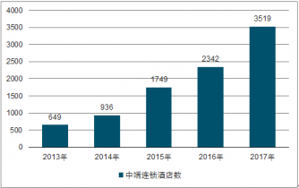 2013-2017年中國中端連鎖酒店數(shù)量變化情況(個)