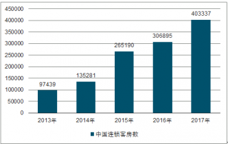 2013-2017年中國中端連鎖酒店客房數(shù)變化情況(個)