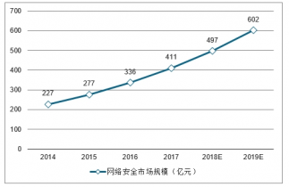 2014-2019年中國(guó)網(wǎng)絡(luò)安全市場(chǎng)規(guī)模走勢(shì)
