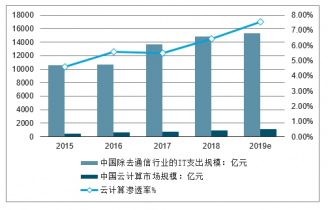 中國(guó)除去通信服務(wù)IT開(kāi)支和云計(jì)算市場(chǎng)規(guī)模和滲透率,2018 年預(yù)計(jì)公有云和私有云總滲透率 7%
